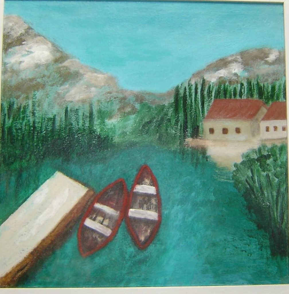 Casas do lago. 59x66cm. Acrílico s. mdf (madeira) Publicado em 30 Outubro, 20173 Novembro, 2017 por Angelina Martinho